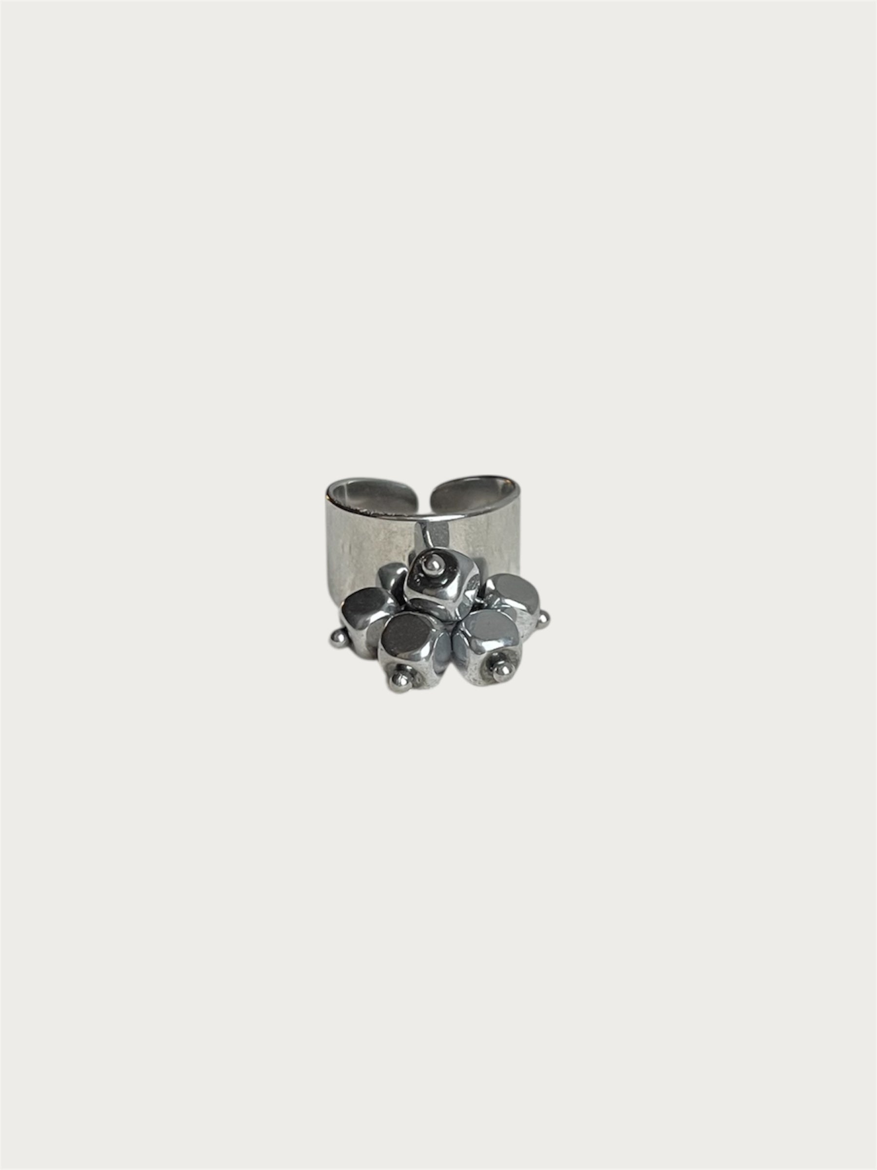 Bague argentée réglable avec breloques.
