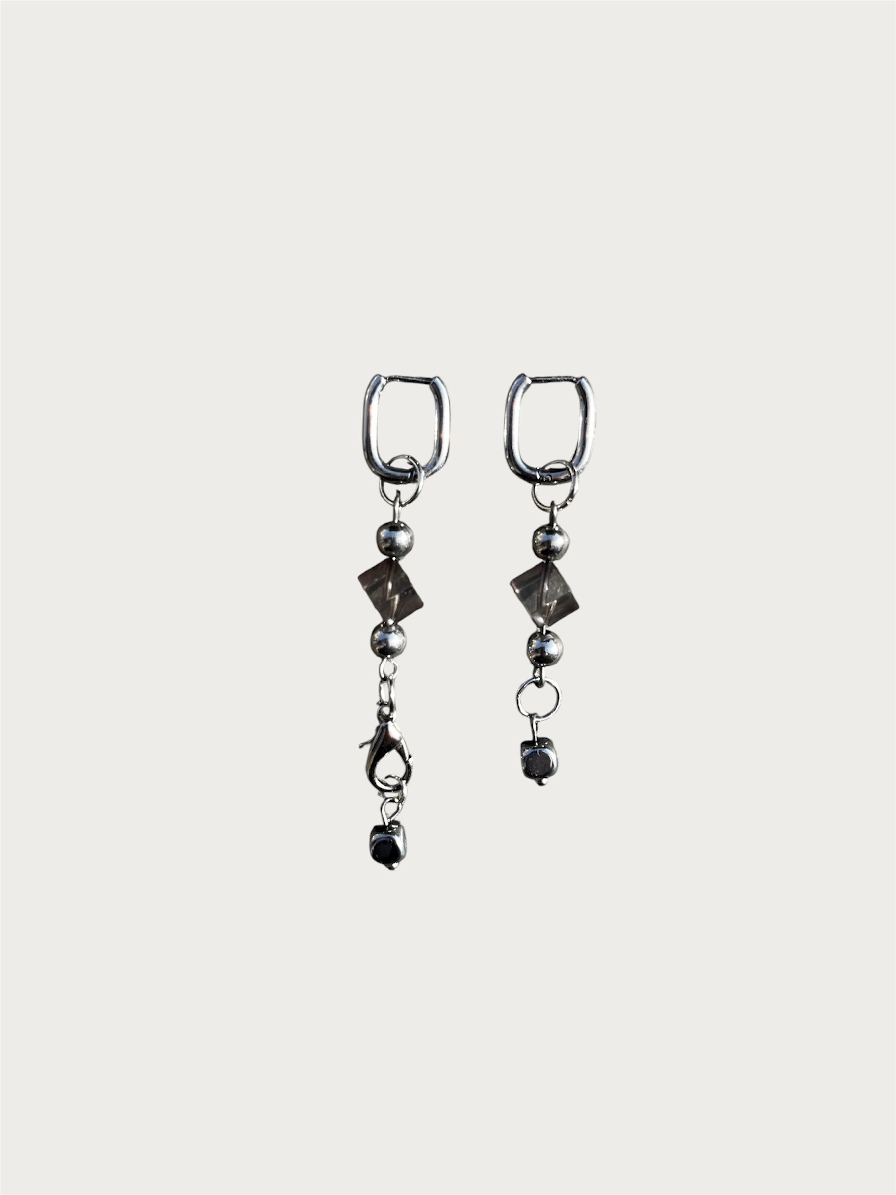 Boucles d’oreilles asymétrique upcyclées composé d’éléments chiné.